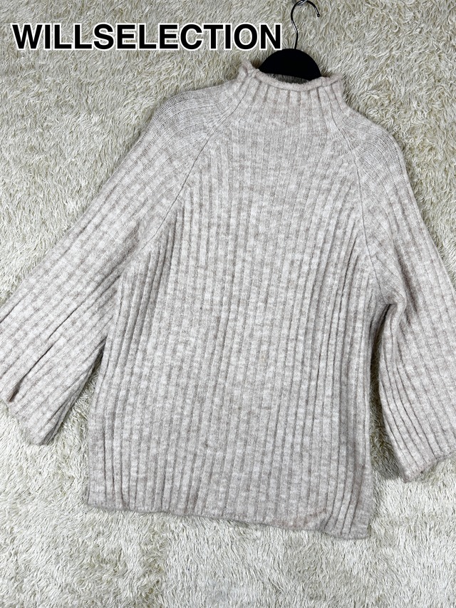 ウィルセレクション リブニット ハイネック 七分袖 ベージュ