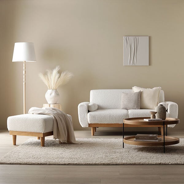 ※アイボリー(ブークレ)、ネイビー(コーデュロイ)は2人掛け単品・2人掛け+オットマンの展開はございません。