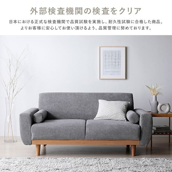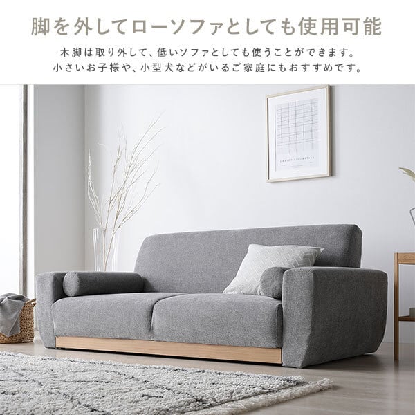 ソファ 2.5人掛け 単品 グレージュ 天然木 木脚 着脱可 肘付 洗える カバー付 ソファー ローソファ