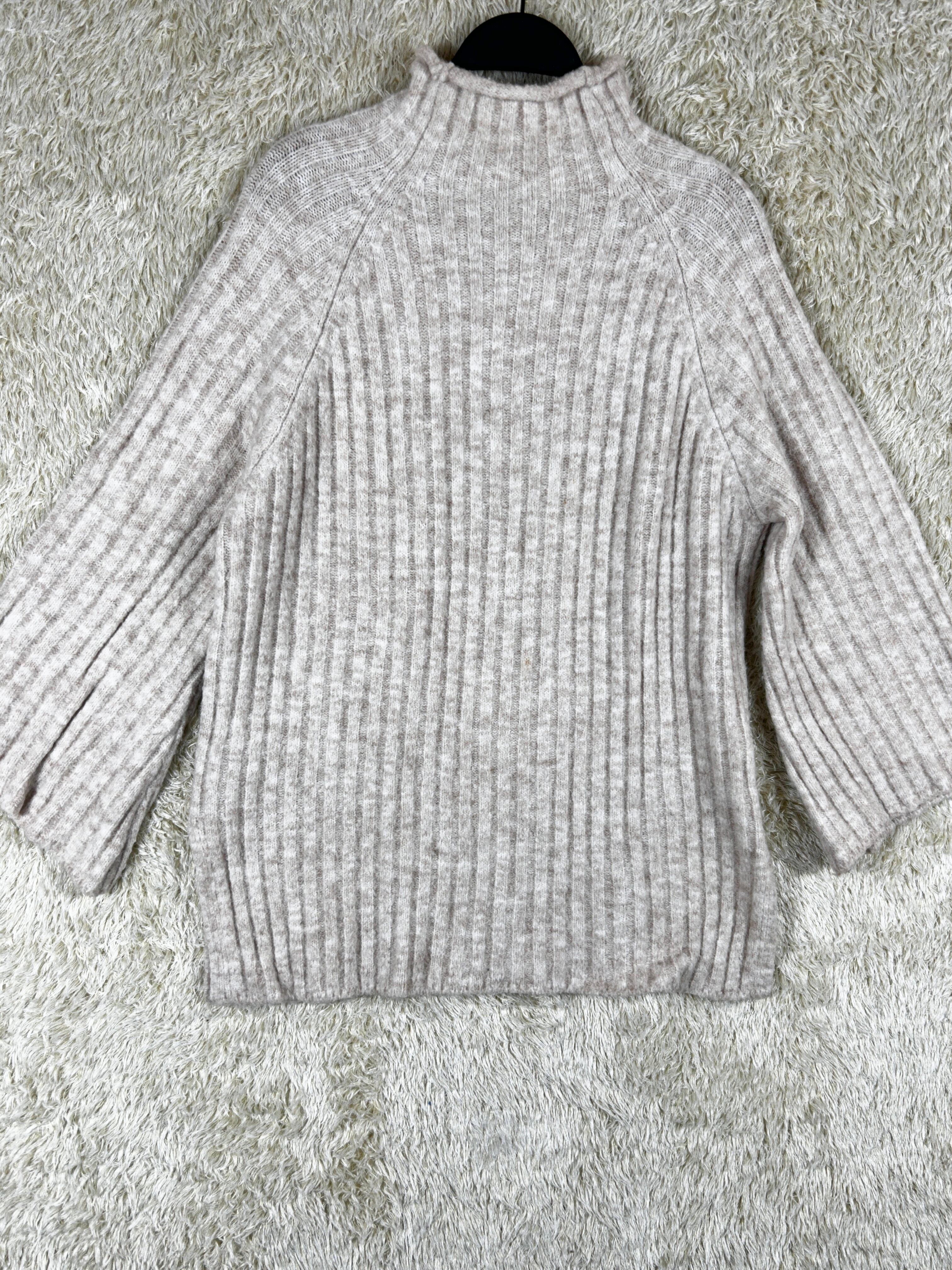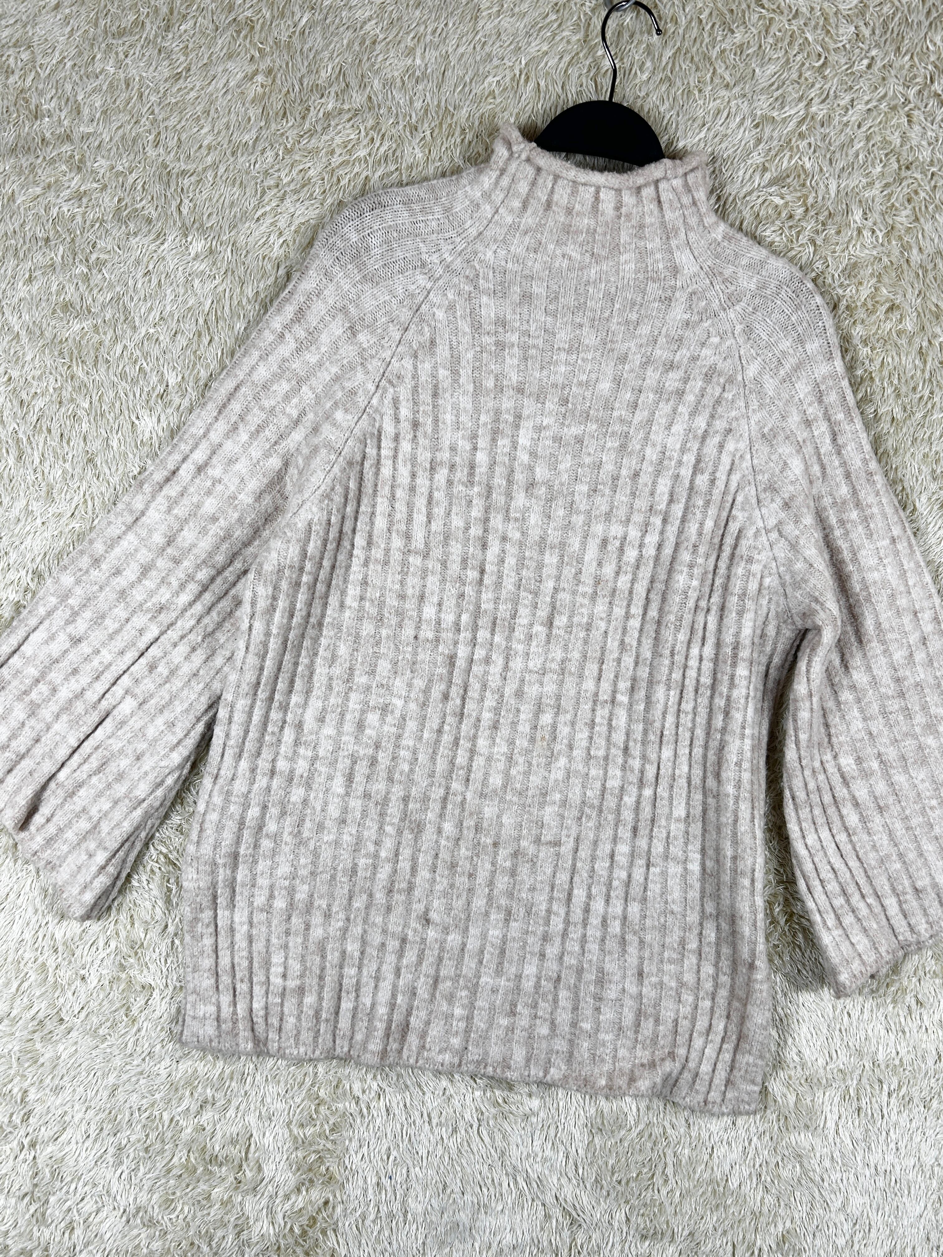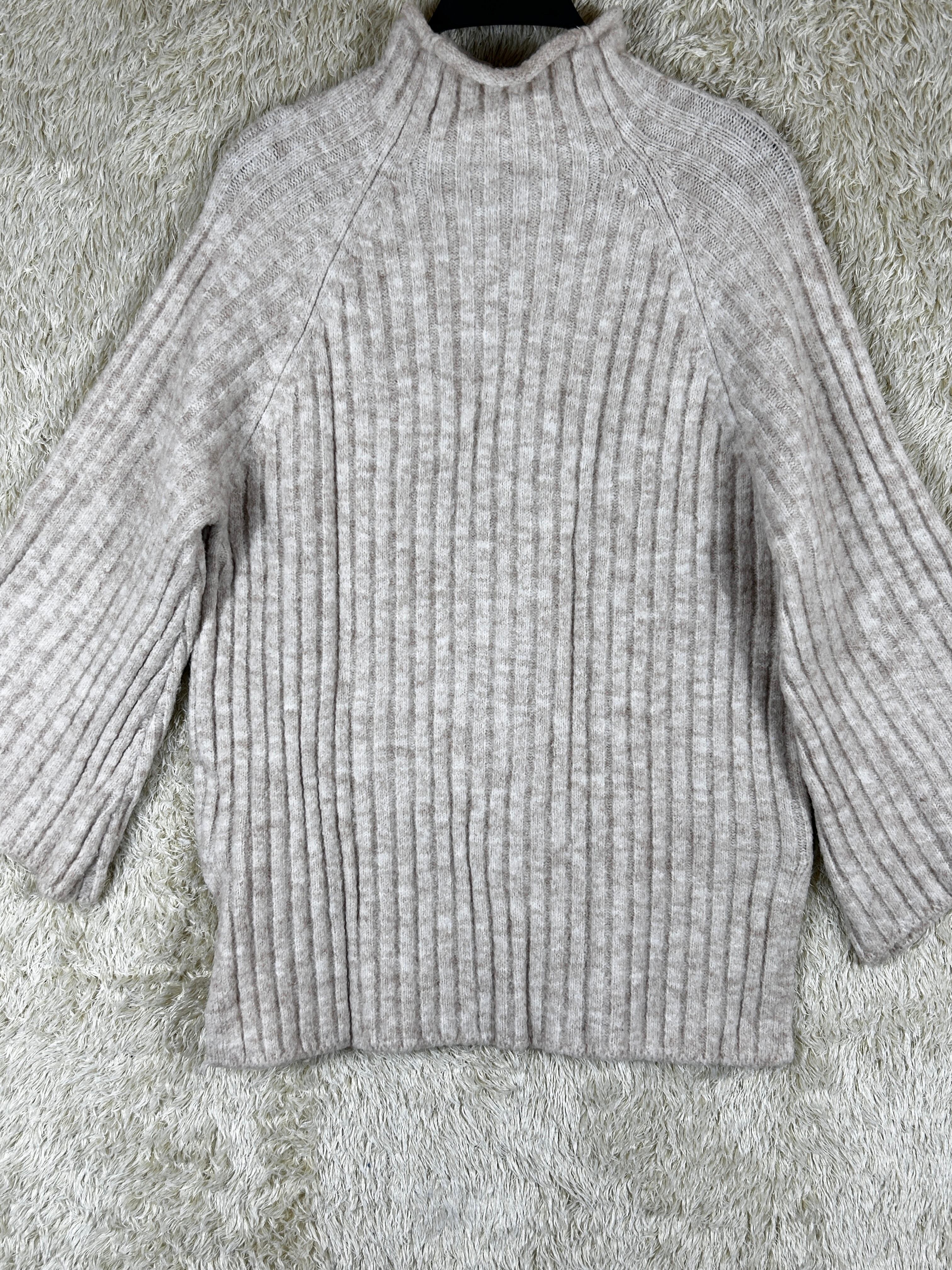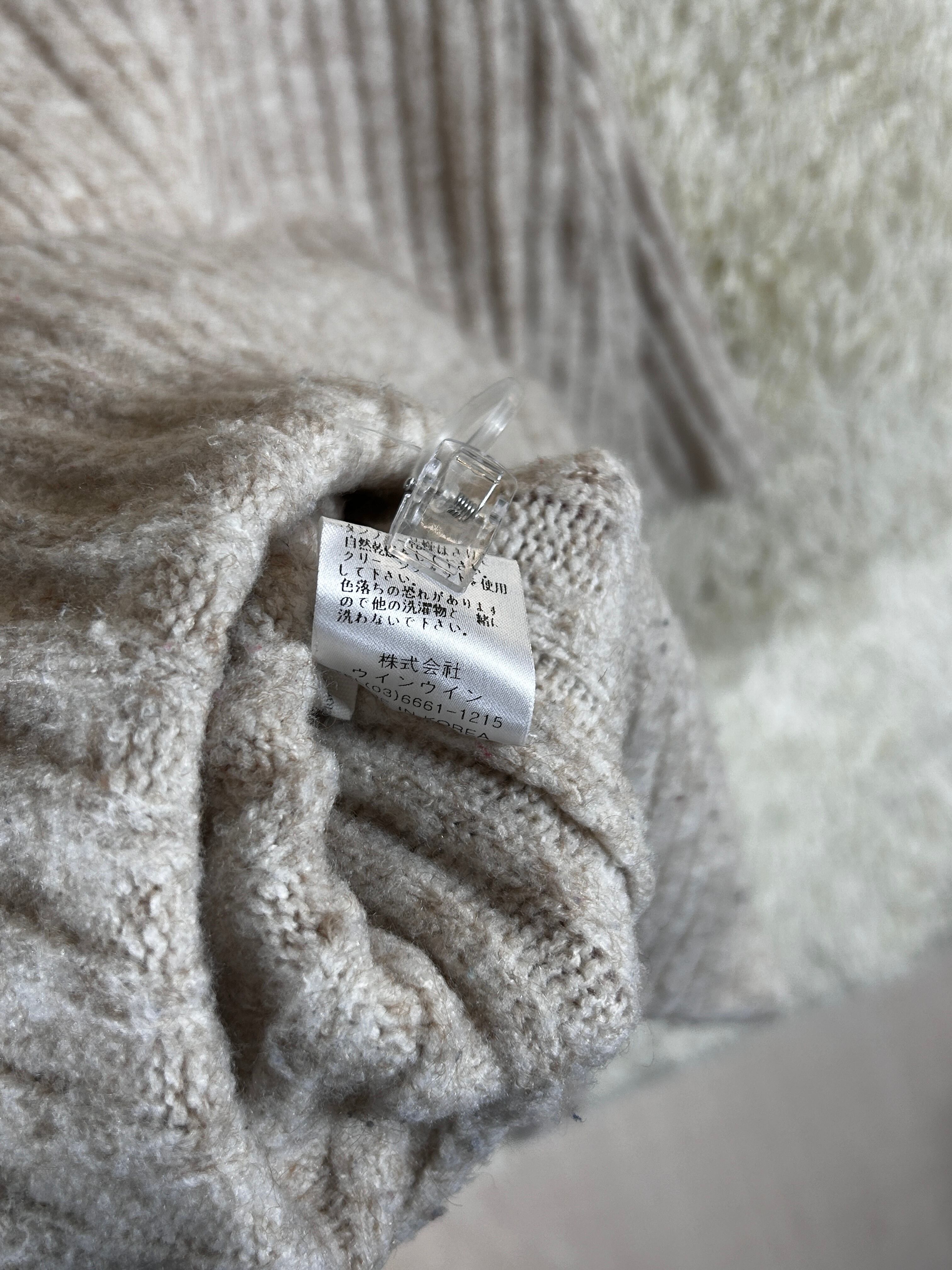 ウィルセレクション リブニット ハイネック 七分袖 ベージュ