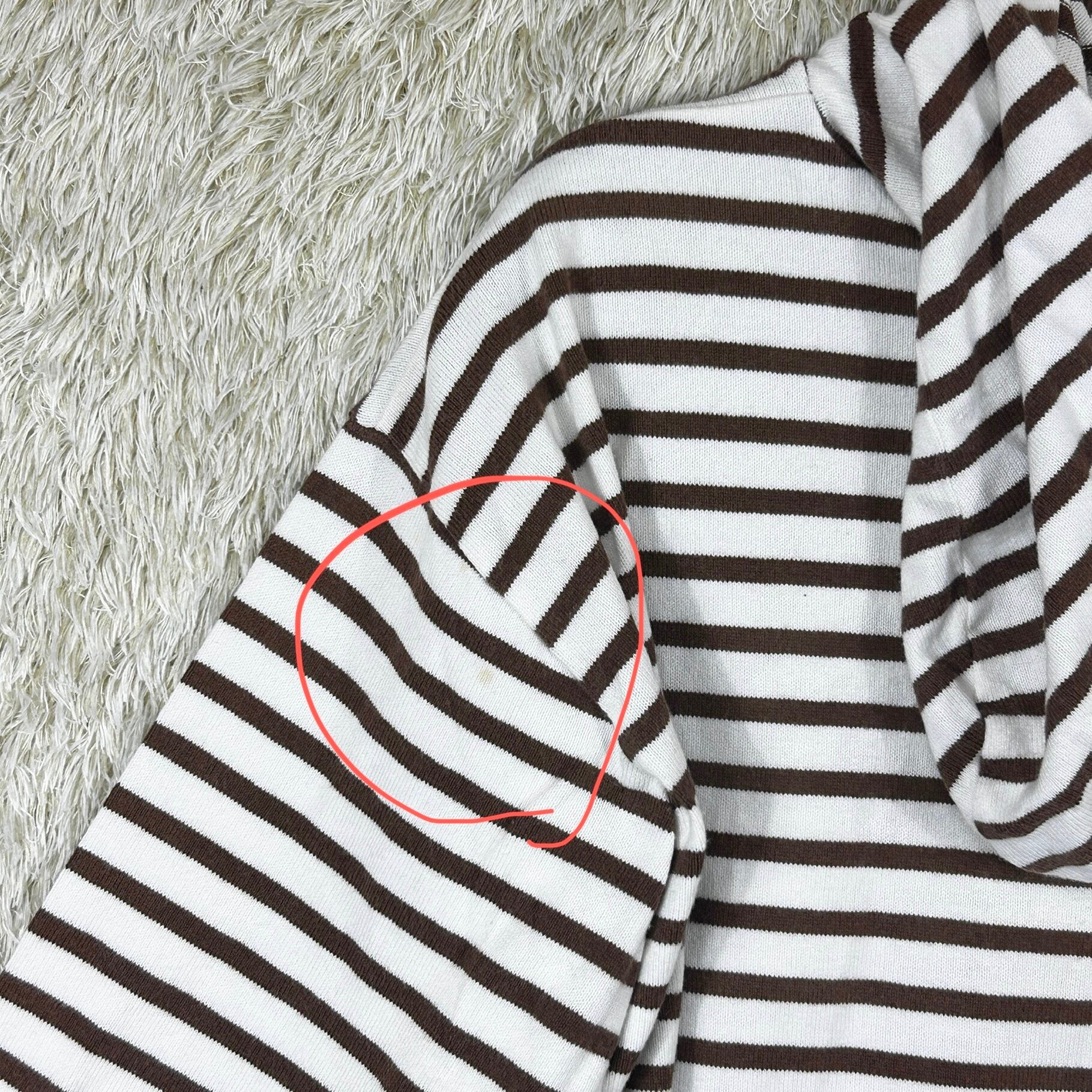 ブラウン×オフホワイトの落ち着いた配色で、カジュアルにもナチュラルにも着回しやすい一枚です。