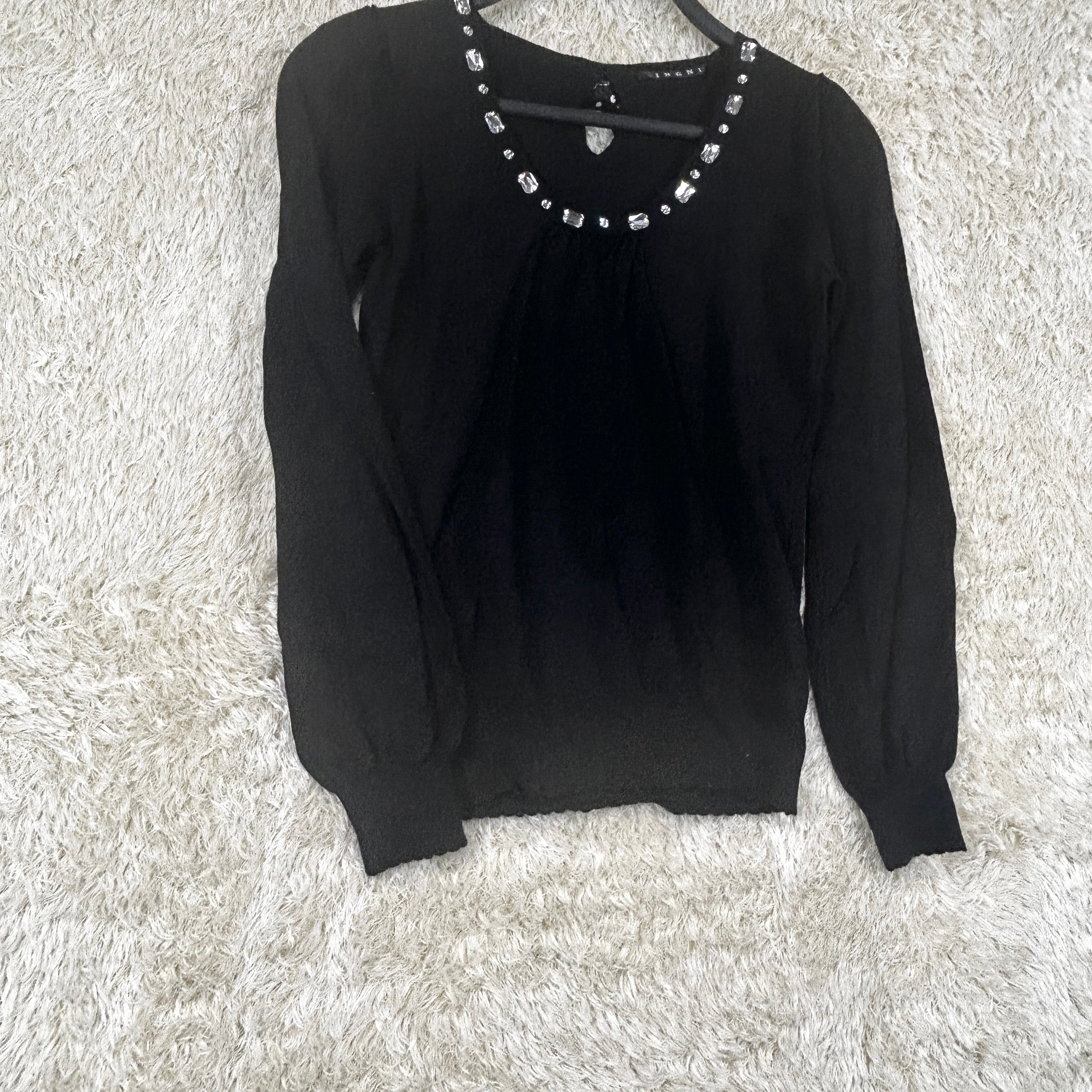 INGNI ビジュー付 長袖ニット 黒 ドットリボン Mサイズ
