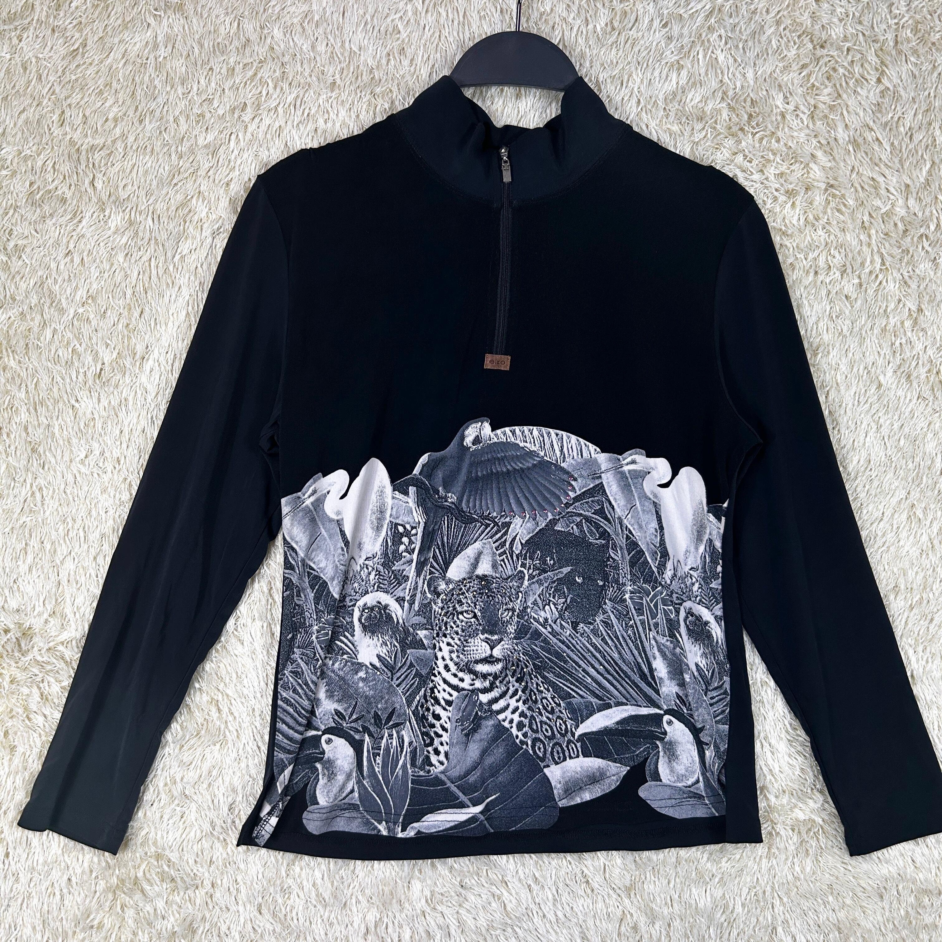 atelier e ハーフジップ カットソー アニマル柄 ブラック Mサイズ