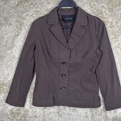 ブラウンの落ち着いた色味が大人の女性らしさを引き立て、春秋の羽織りにぴったり。