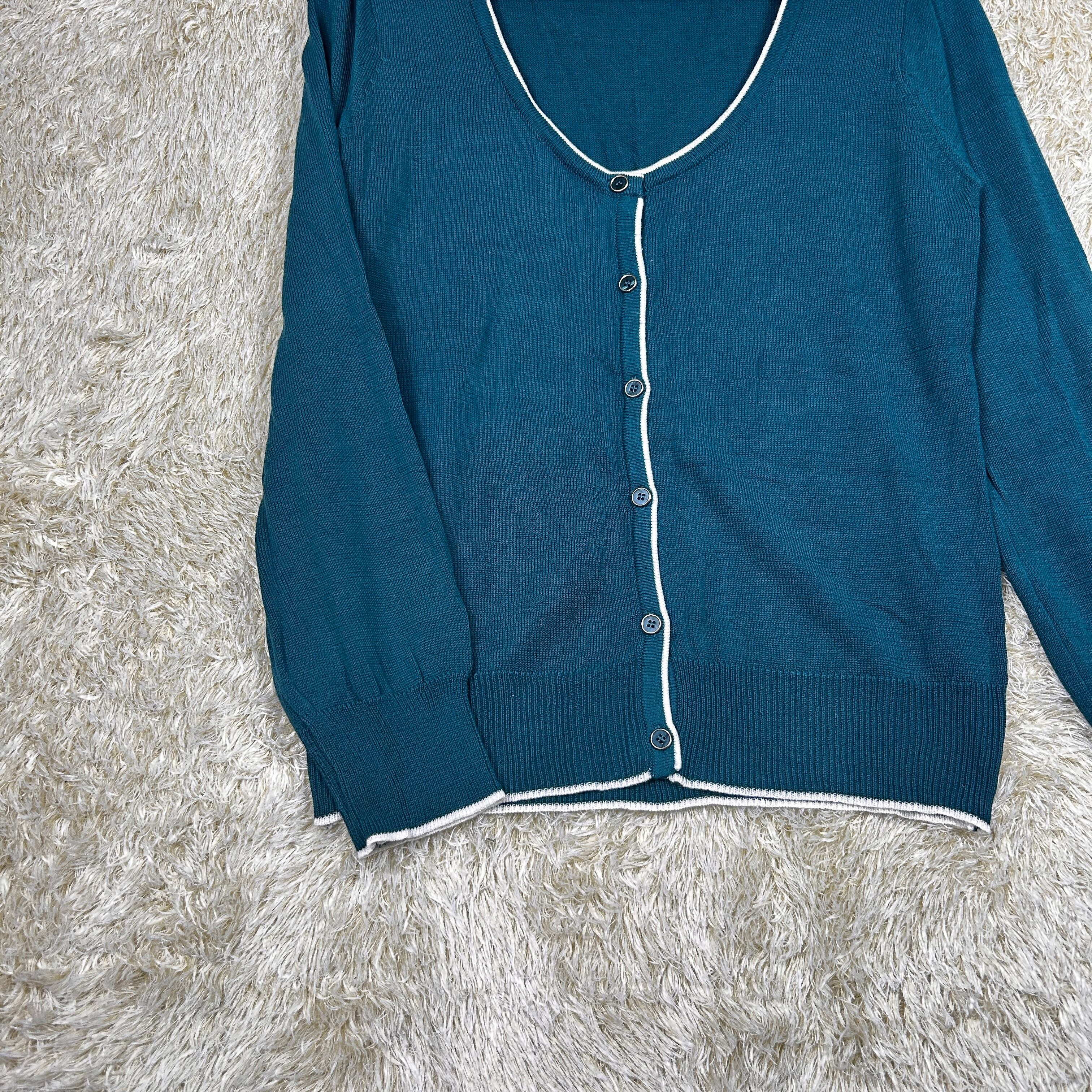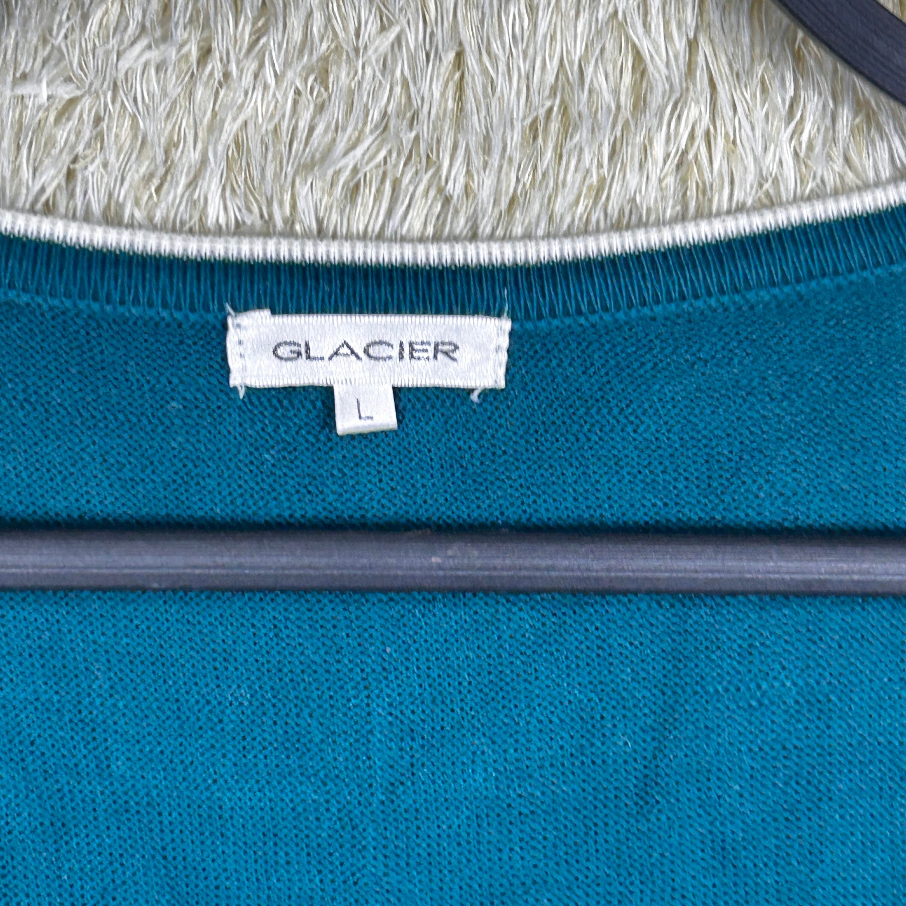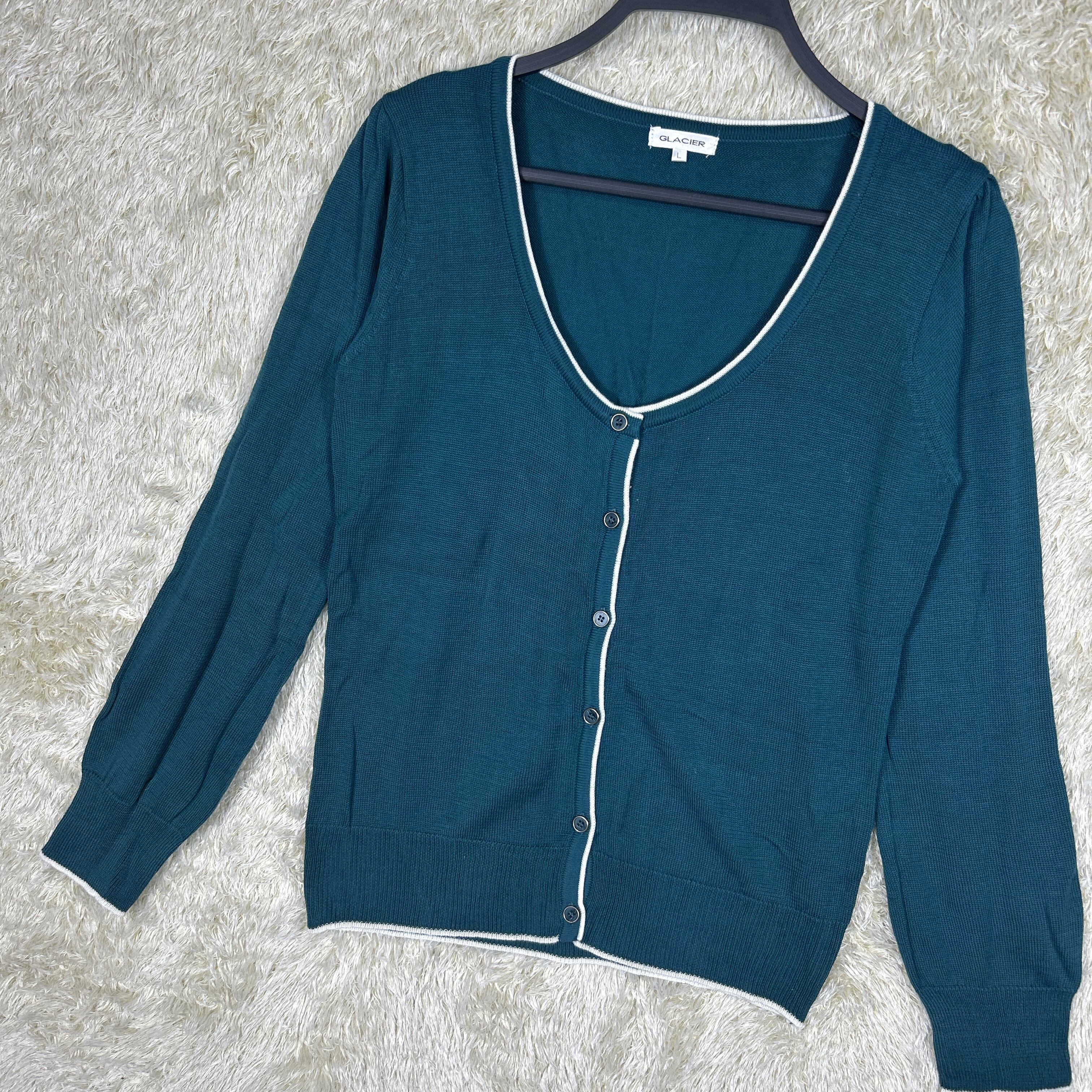 GLACIER 配色ライン カーディガン ブルーグリーン L レディース