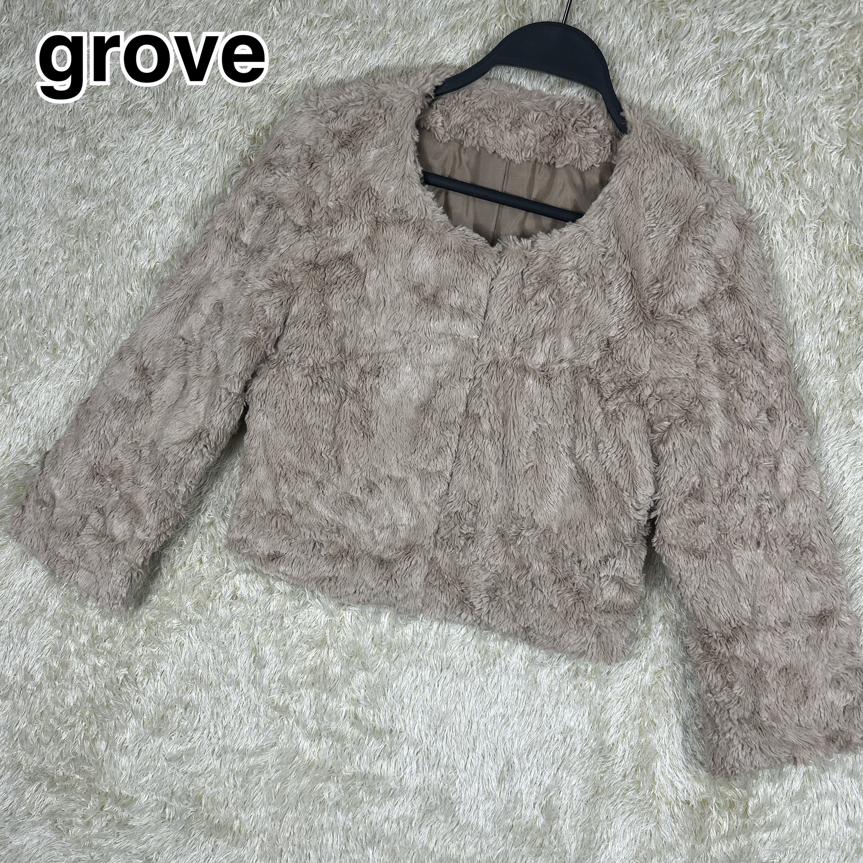grove フェイクファー ショートジャケット ベージュ M レディース