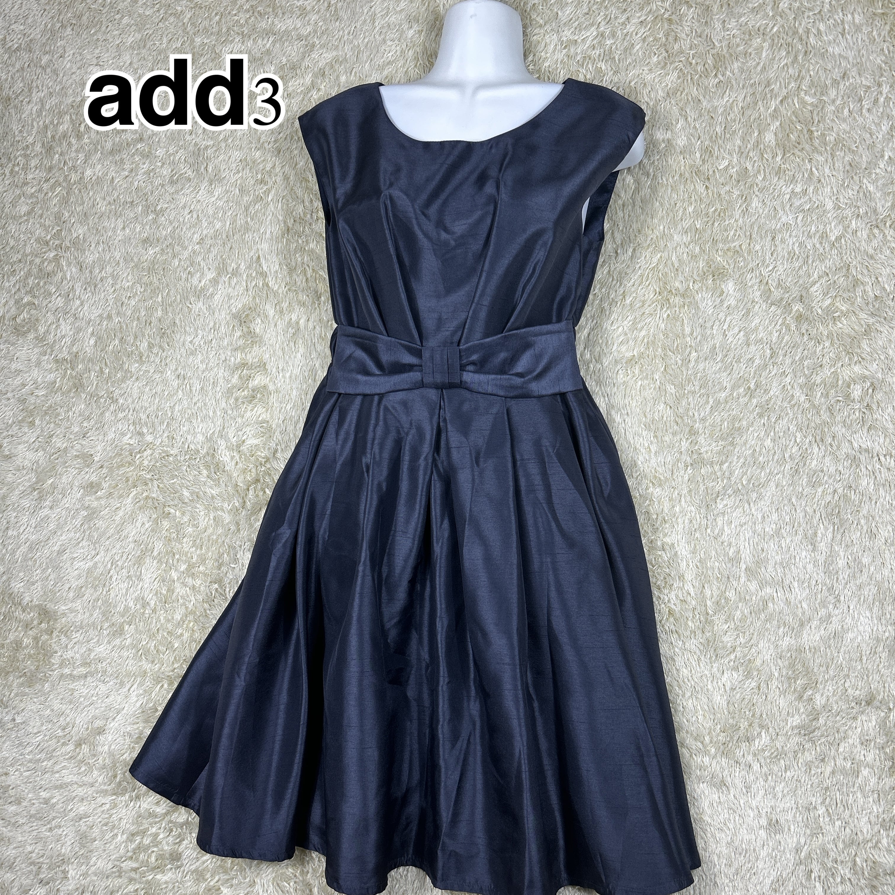 add3 リボンベルト付き フレアドレス ネイビー Mサイズ