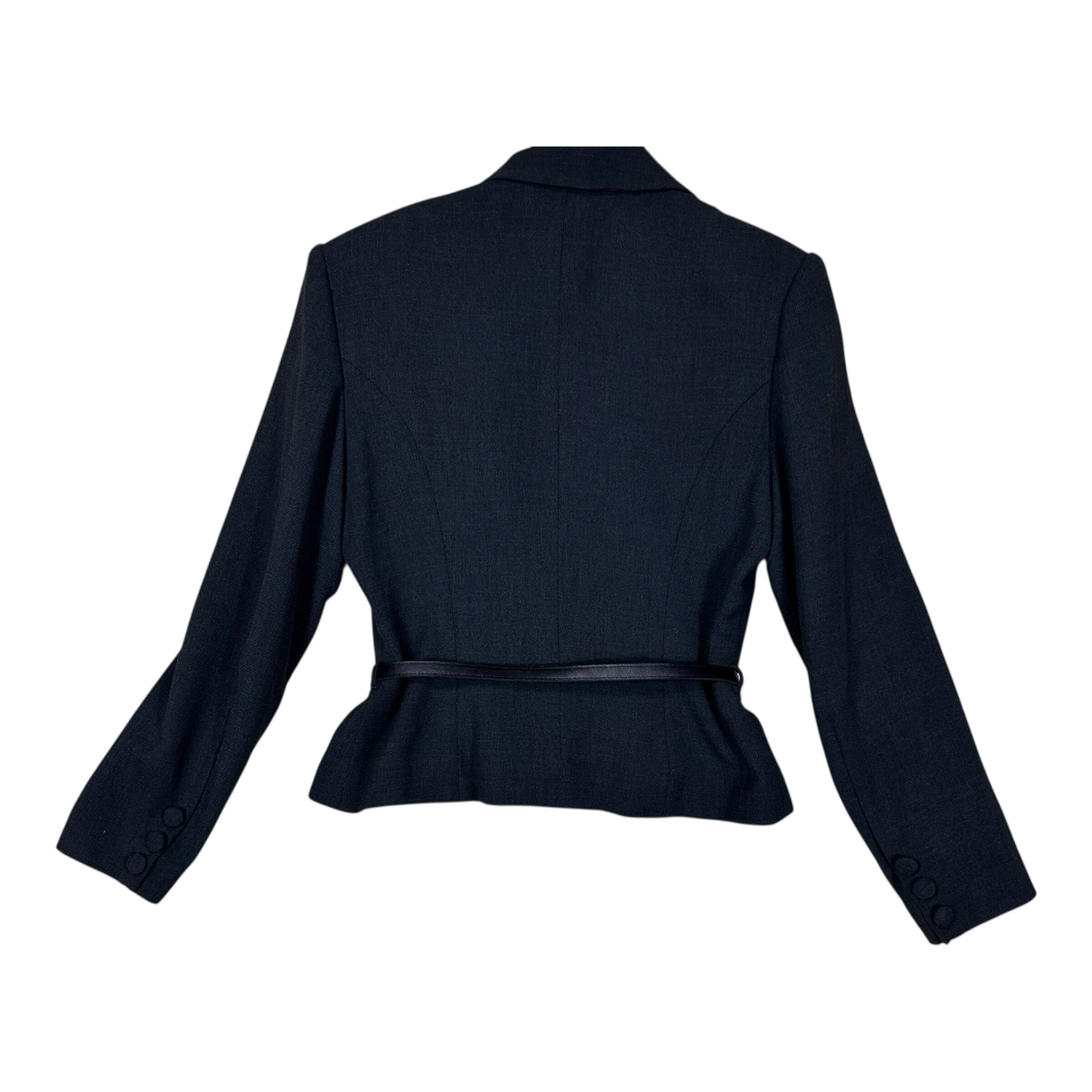 程よくウエストラインを意識したジャケットは、体のラインを拾いすぎず、すっきりとした印象に。