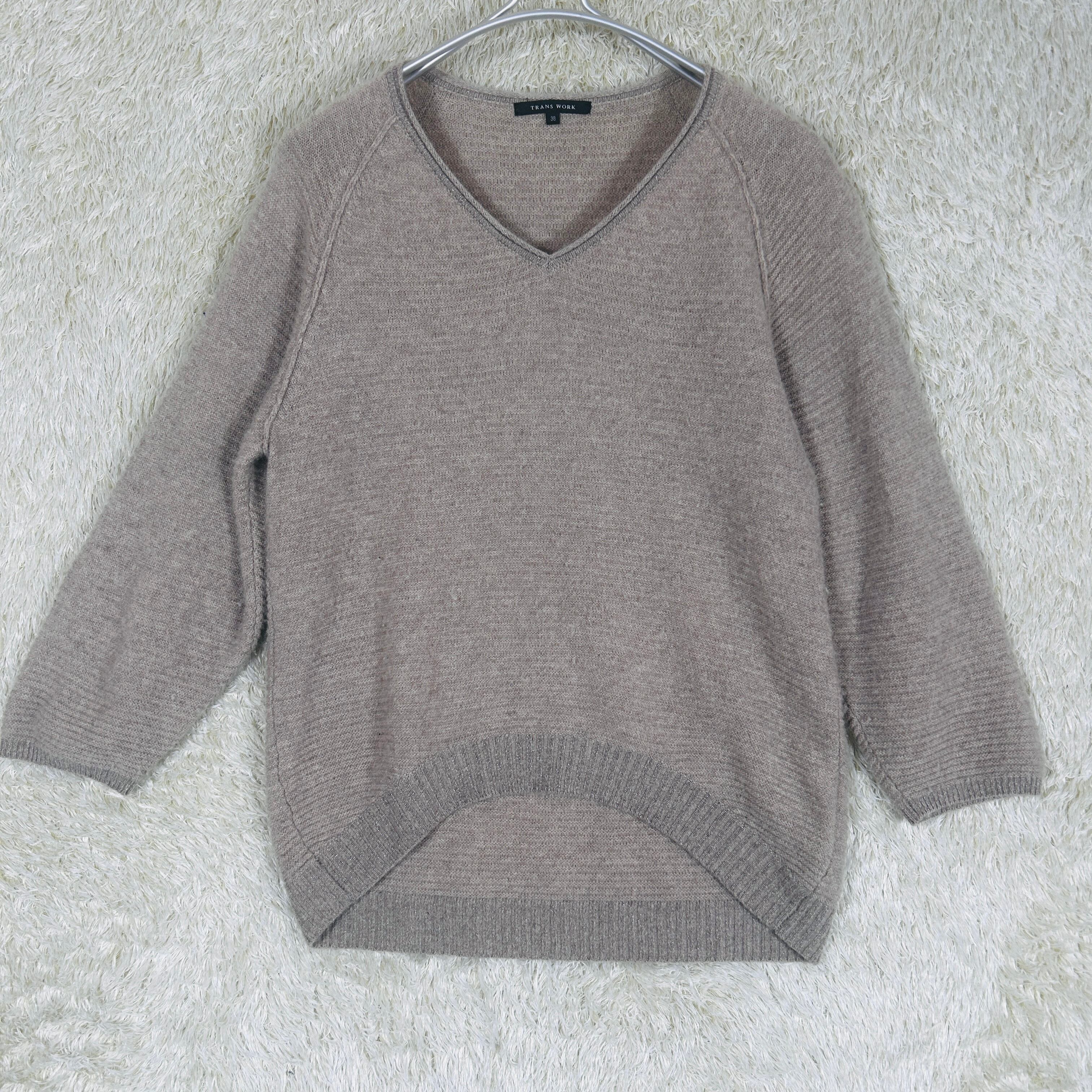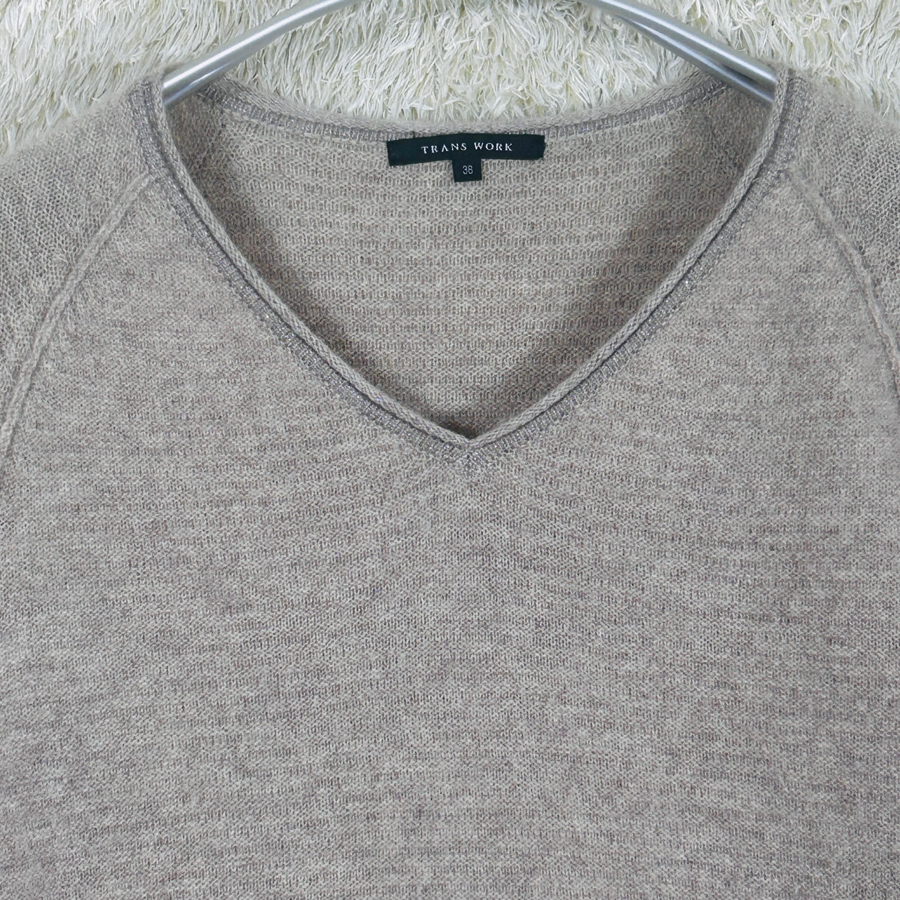 カシミヤ100% TRANS WORK Vネックニット ベージュ 38
