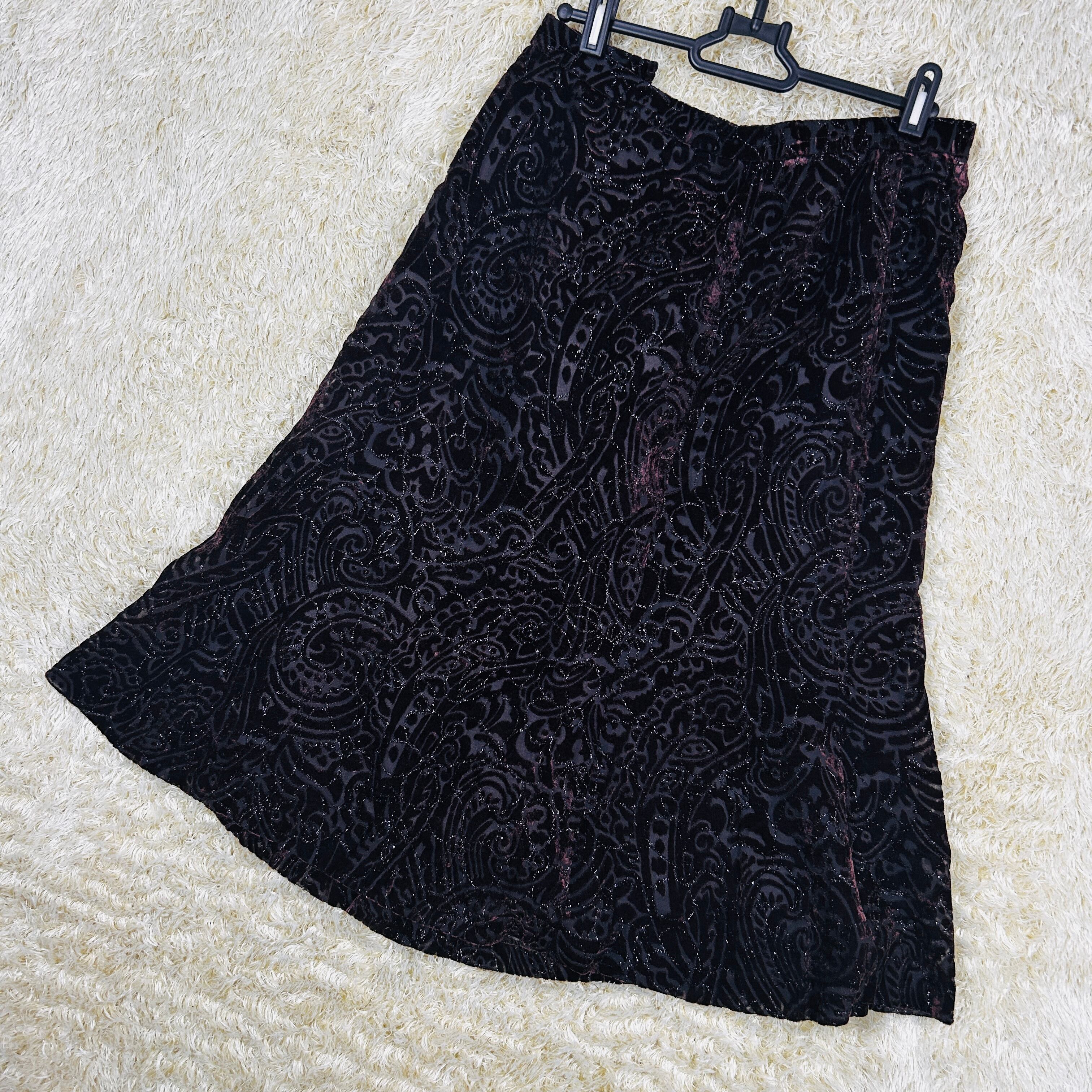 ペイズリー柄 ベロアフレアスカート ブラック系 日本製