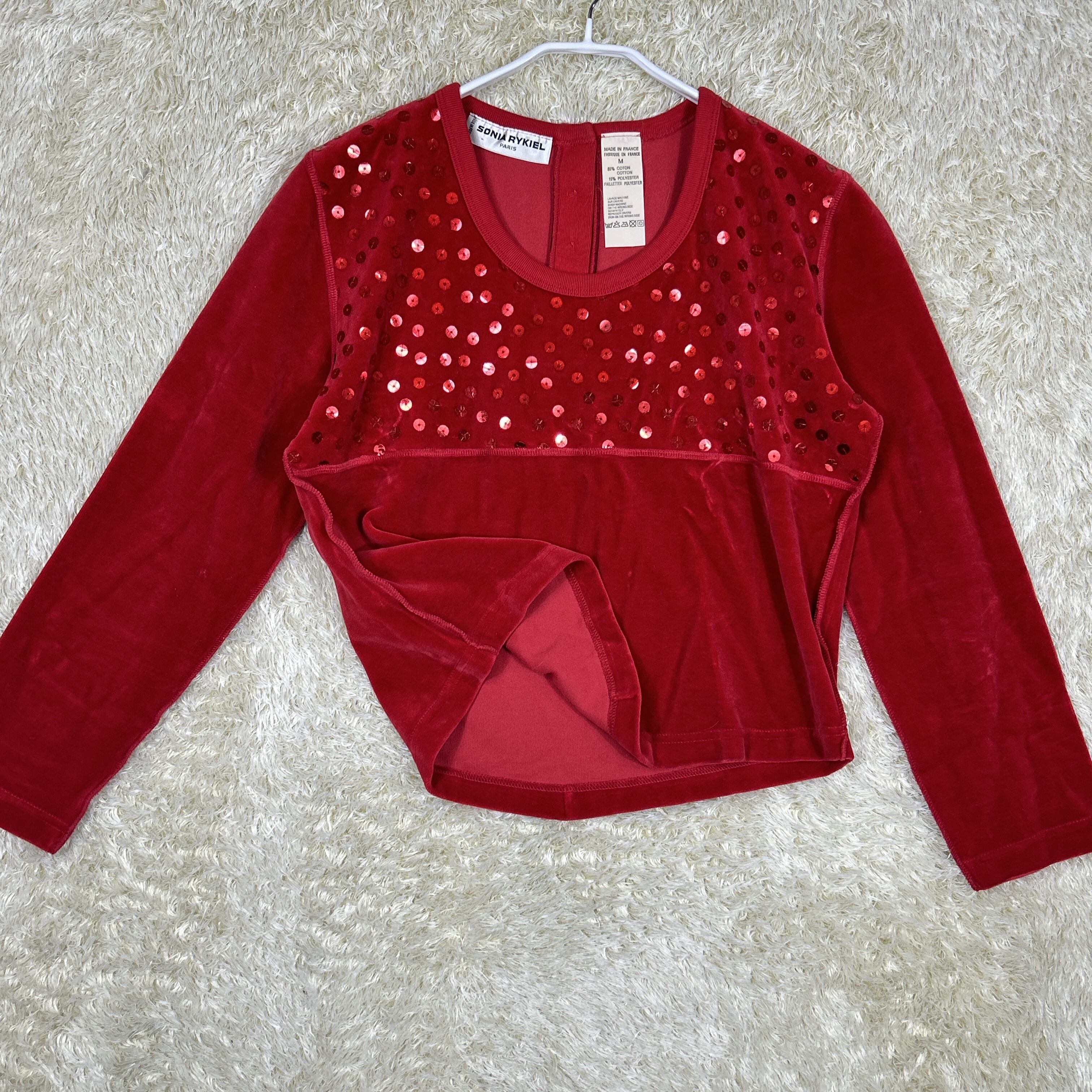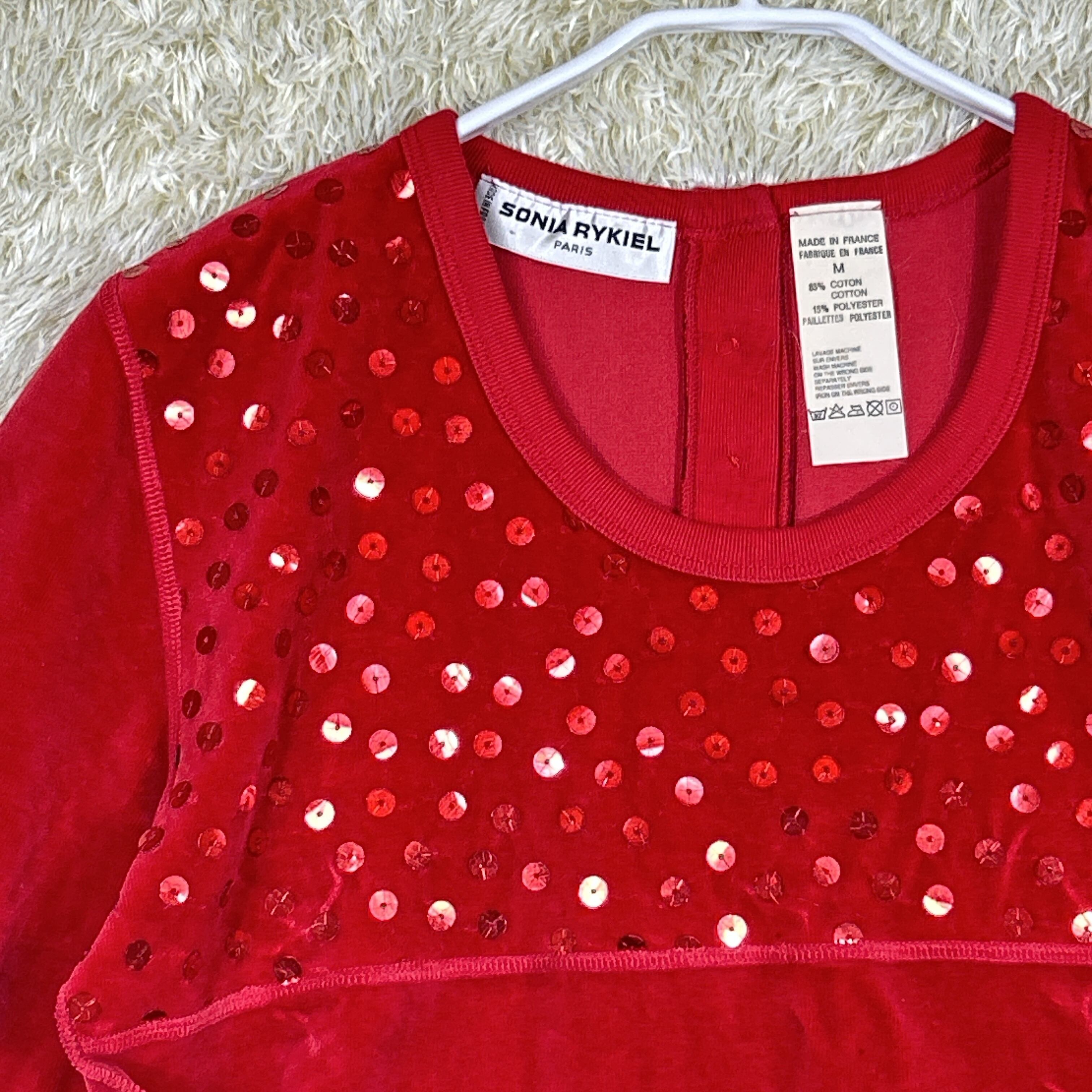 SONIA RYKIEL PARIS スパンコールトップス 赤 M